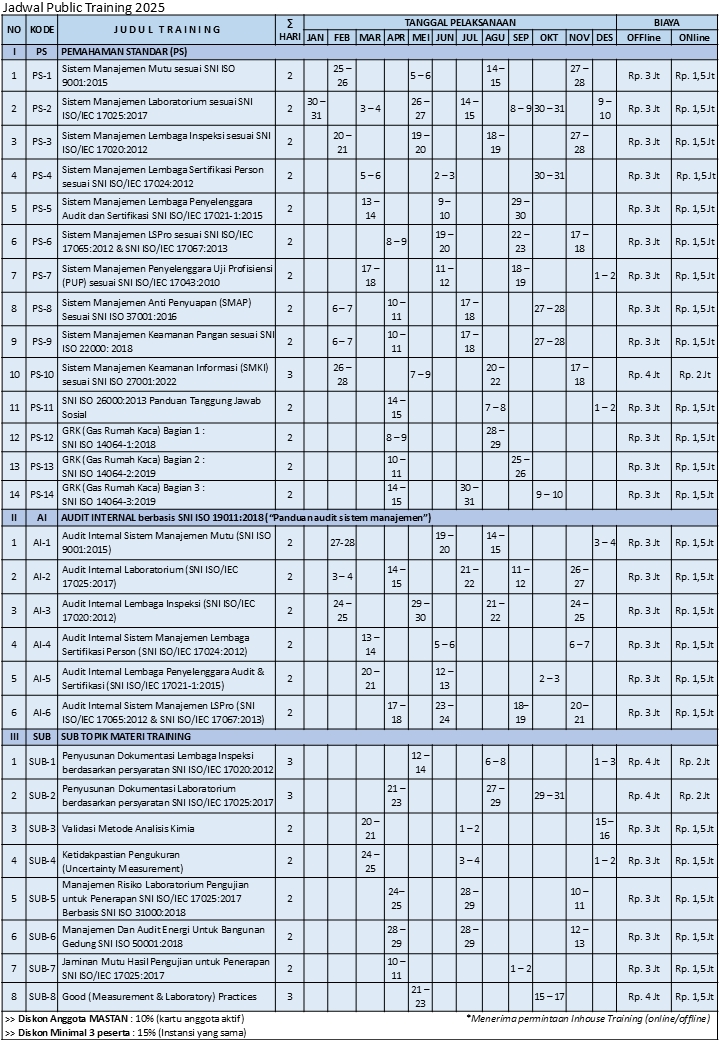 Jadwal Training 2025 (tentative)